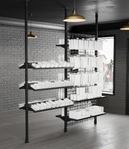 MAXe is a modular shopfitting system exclusive to Shop for Shops. It uses a post-and-rail architecture that lets you configure shelving, hang rails, gondolas, and display units to suit virtually any retail environment, from fashion boutiques and sports stores to pharmacies and exhibition spaces.